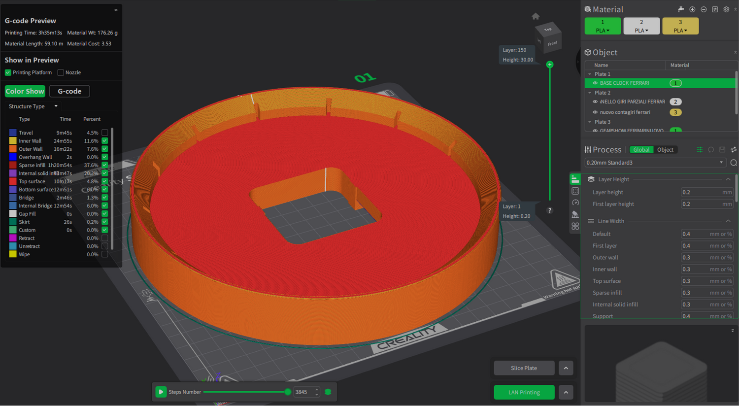 Once we have completed the FIRST, and I stress FIRST, version of our project, we upload it into a slicing software, where the project file is "translated" into a language that the 3D printer can understand (.gCODE).