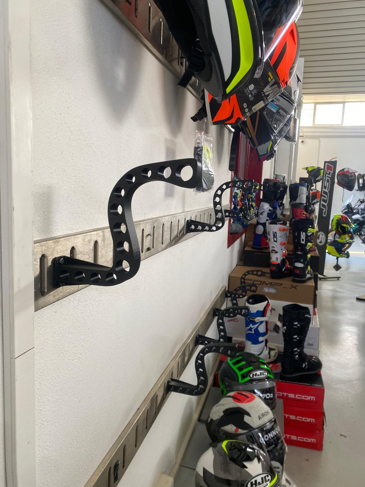 I created a custom helmet rest from scratch for a motorcycle parts and accessories store.