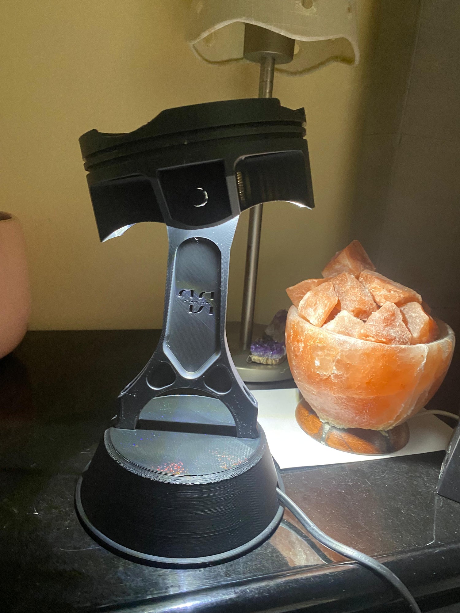 Inspired by the Piston Cup, I created the first Piston Bajour with white circular LEDs, ideal for night reading.
