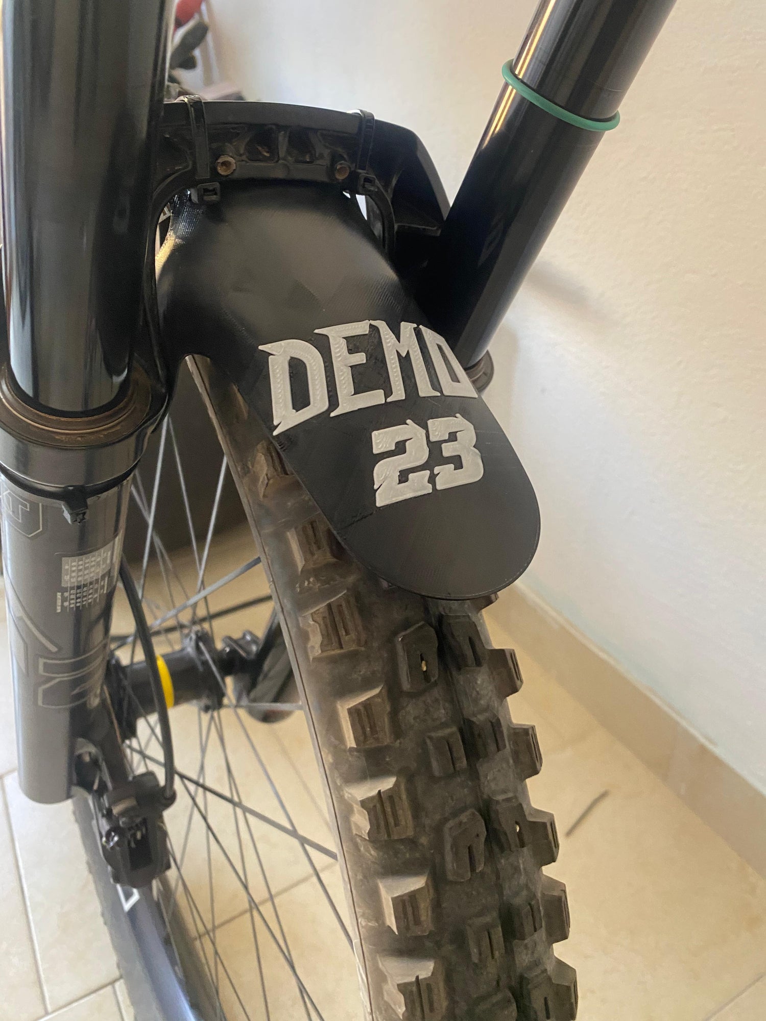 This is a universal mountain bike mudguard personalized with Name/Nickname and number.