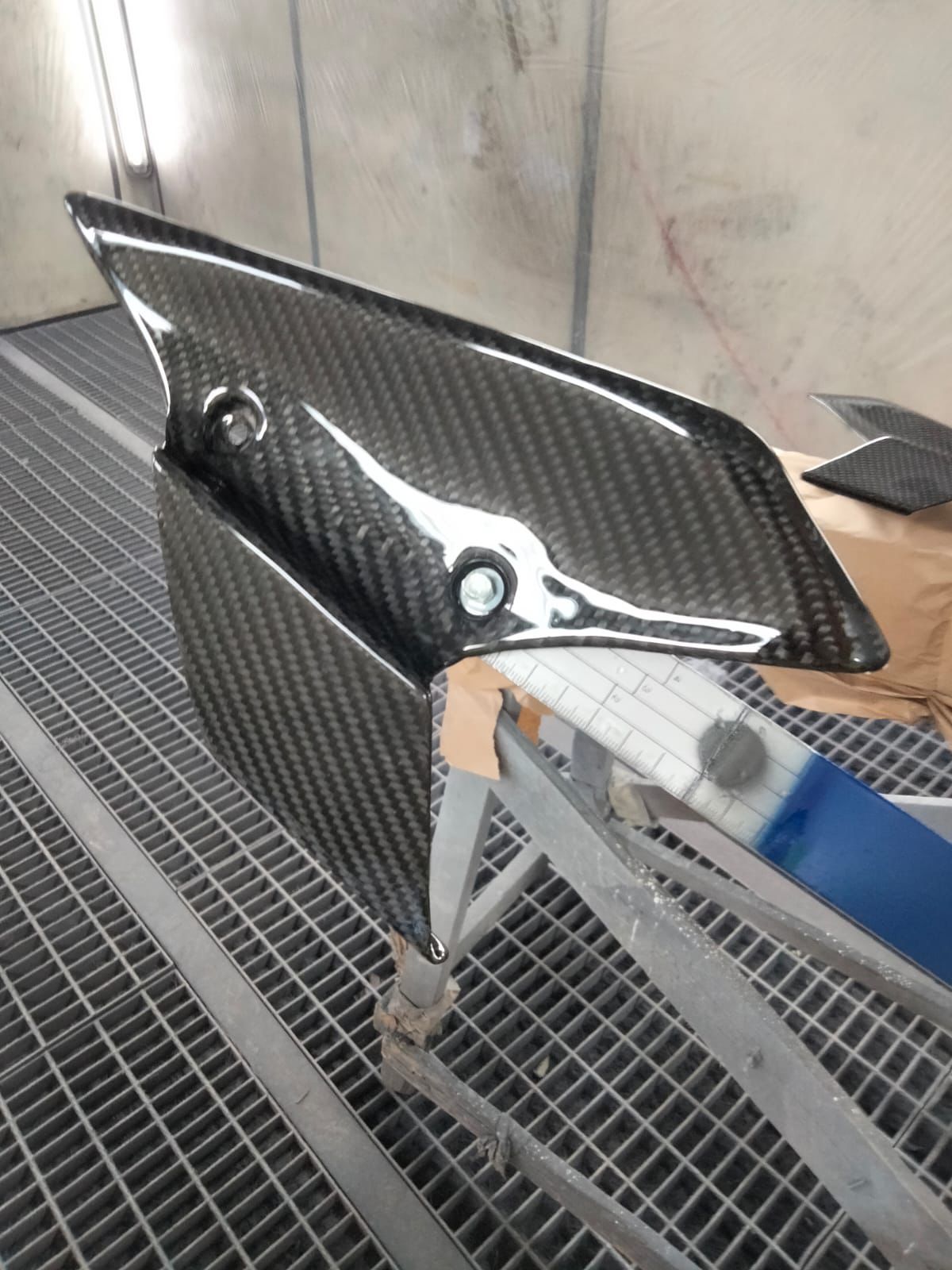 In collaboration with a workshop, I created two aerodynamic winglets for this splendid BMW S1000RR. After reverse engineering, and scanning the stock winglets, I added a profile that extends first outward and then towards the ground.
