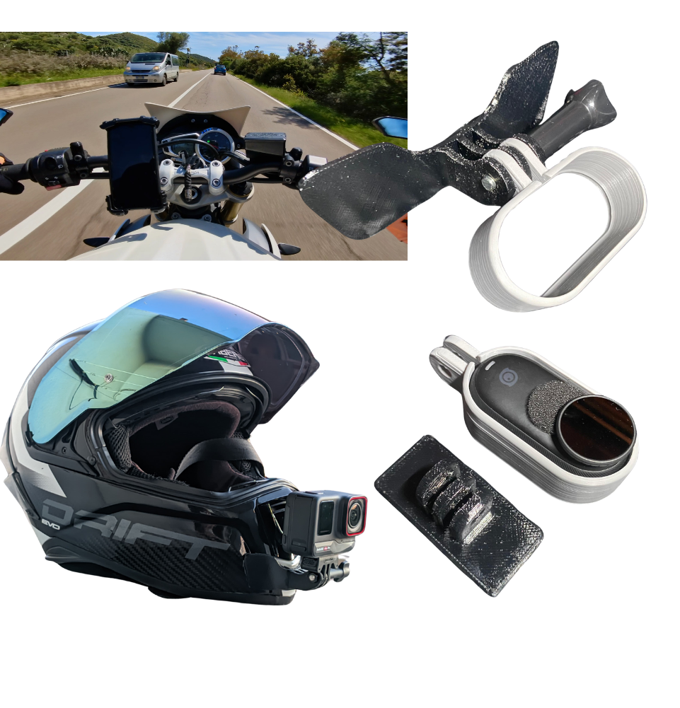 After several design tests and mechanical stresses, I arrived at this ergonomic profile that follows the curve of the internal shell of the helmets, making positioning comfortable and stable.